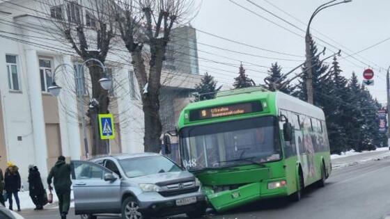Рядом с драмтеатром легковой автомобиль врезался в троллейбус