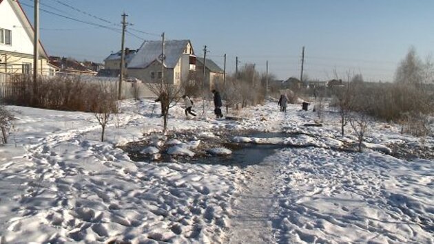 Тем временем местные жители вынуждены обходить препятствие. Дорогу, ведущую на остановку общественного транспорта, быстро затапливает. Напор такой мощный, что даже 15-градусный холод не в силах превратить в лед вырывающиеся из-под земли потоки чистой питьевой воды.