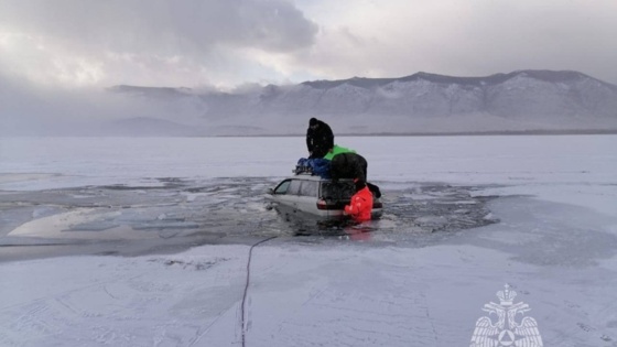 Машина с людьми провалилась под лед на Байкале