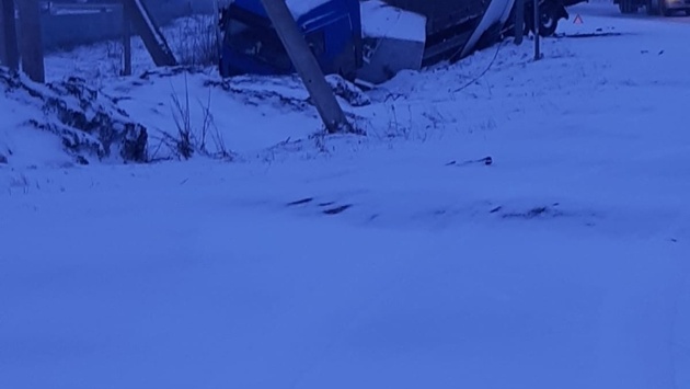 В кузбасском поселке произошло ДТП – грузовой автомобиль слетел с дороги.