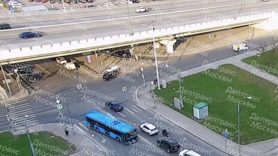 Два автомобиля столкнулись на Рублевском шоссе в Москве. Видео