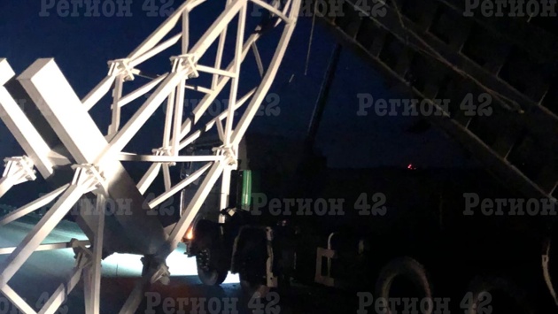 Поднятый кузов грузовика уничтожил опору с видеокамерами на кемеровской трассе