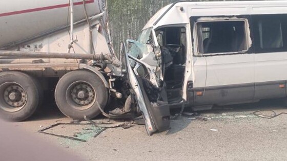 Не соблюдая скоростной режим и дистанцию между автомобилями, на задымленной трассе водитель Газели врезался в цементовоз и погиб на месте, шесть пассажиров травмированы.