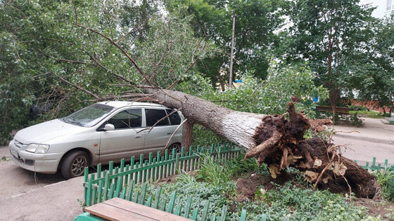 Инцидент произошел 12 июня в городе Балаково Саратовской области. Как сообщили жители в соцсетях, большое дерево ветром было вырвано с корнем и рухнуло на припаркованный легковой автомобиль во дворе дома № 69/4 на Саратовском шоссе. Упавший ствол перегородил проезжую часть. К счастью, никто во время происшествия не пострадал.