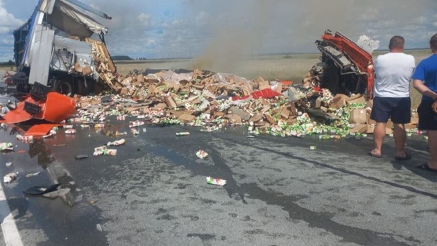 Под Новосибирском при столкновении трех фур погиб водитель