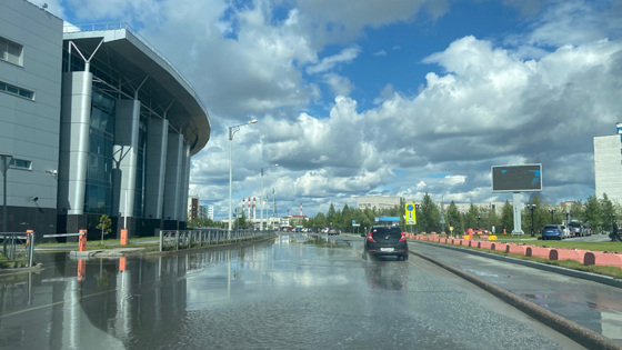 Жители Нового Уренгоя (ЯНАО) жалуются за затопленное после дождя дороги. Об этом горожане написали в соцсети «ВКонтакте».