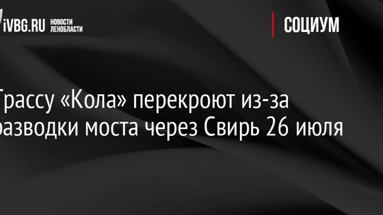 Трассу «Кола» перекроют из-за разводки моста через Свирь 26 июля