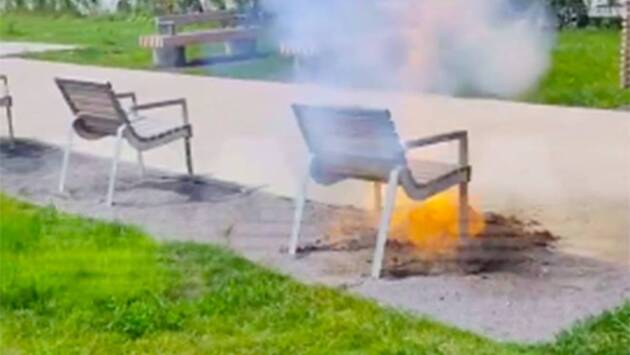 В столичном ЖК «Мир Митино» произошло возгорание кабеля под стоящим во дворе стулом. Видео без уточнения даты происшествия опубликовал Telegram-канал «Новости Москвы».