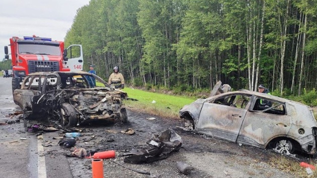 "Трагедия произошла сегодня в двенадцатом часу дня на 419-м км федеральной трассы Тюмень - Ханты-Мансийск в Уватском. По предварительной информации, в результате столкновения трех легковых автомобилей и последующего их возгорания погибли три человека, четыре получили различные травмы. Движение на данном участке частично ограничено", - говорится в сообщении.