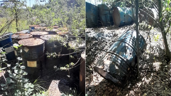 Двухсотлитровые бочки, предположительно, с дорожными адгезионными присадками в лесном массиве в районе местного асфальтового завода обнаружили местные жители. Сообщалось, что жидкость из емкостей вытекала на почву, попадая в местный ручей, передает "Уралинформбюро".