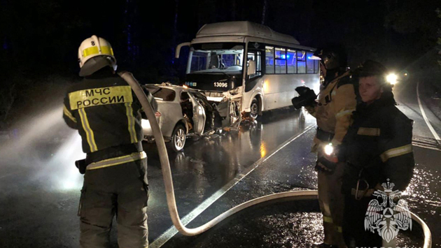 Инцидент произошел накануне вечером в Советском районе города. Водитель 1997 года рождения на автомобиле Toyota Sprinter Marino двигался в сторону улицы Иванова. В какой-то момент он выехал на полосу встречного движения, после чего иномарка лоб в лоб столкнулась с пассажирским автобусом ПАЗ.