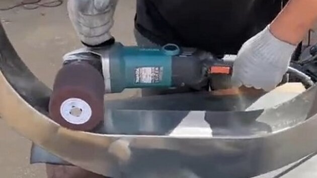 На кадрах видно, как обрабатывают букву О. Специалист объясняет, что большая часть работы уже выполнена, осталось привести в порядок всего несколько металлических букв.