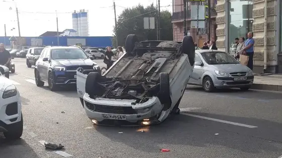 Мужчина на самокате спровоцировал аварию с переворотом в Санкт-Петербурге, момент попал на камеры наблюдения. Об этом сообщает Telegram-канал «Mash на Мойке».