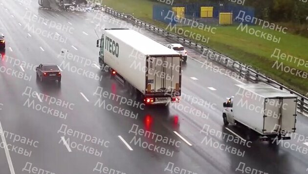Грузовой автомобиль опрокинулся на проезжую часть на 83-м километре МКАД