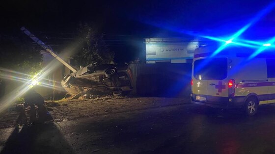 Установлено, что ночью 8 октября по ул. Сахалинской двигался автомобиль Chery. Его водитель не справился с управлением и врезался в электрическую опору. После этого машина опрокинулась.