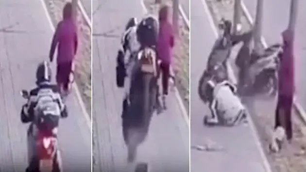 Китайский мотоциклист пожалел, что проложил свой маршрут по пешеходной дорожке: видео