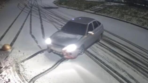 Судя по камерам уличного наблюдения, авария произошла в ночь с 28 на 29 октября. Водителя занесло на повороте, он врезался в круглый ограничитель, а затем попытался продолжить движение.