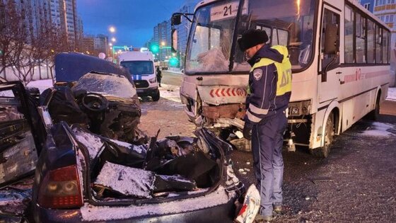 Сообщается, что водитель автомобиля Lada Priora не справился с управлением, выехал на встречную полосу и столкнулся с автобусом, в котором находились десять пассажиров.