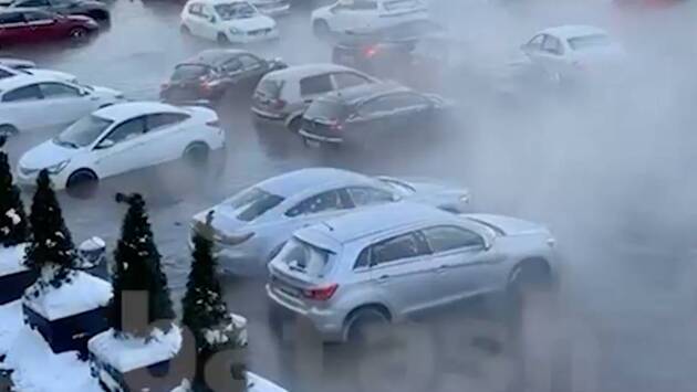 В сеть попали видео с места происшествия. На кадрах видно, что припаркованные рядом с НИПИ «Петон» автомобили затопила горячая вода. Водители пытаются добраться до своих машин, о поломках уже сообщили пять собственников.