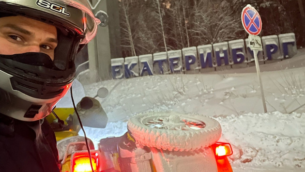 Дмитрий Калинин из Екатеринбурга доехал на советском мотоцикле «Урал» до поселка Юго-Камский под Пермью в почти что 40-градусный мороз. На столь экстремальное путешествие он решился ради участия в мотофестивале «Пермская муть».