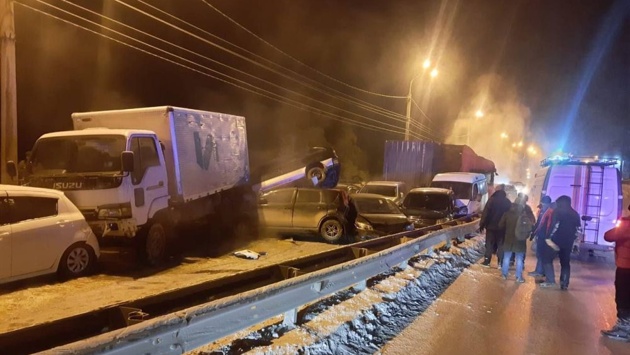 "Участниками столкновения на Кайской горе стали 18 автомобилей, в том числе рейсовый автобус. Один человек пострадал, он госпитализирован", - сообщил глава региона Игорь Кобзев.