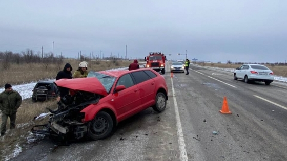 Около 11.40 6 января на 45-м км трассы Волгоград – Каменск-Шахтинский – Луганск водитель машины «Ауди А3» выехал на встречную полосу и столкнулся с автомобилем «Мерседес».