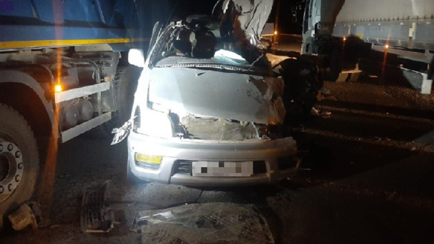 Водитель последней выехал на встречную полосу, где врезался в движущийся навстречу Volvo FH-Truck. Легковое авто откинуло в сторону, где оно столкнулось ещё и с самосвалом марки Volvo FM-Truck.