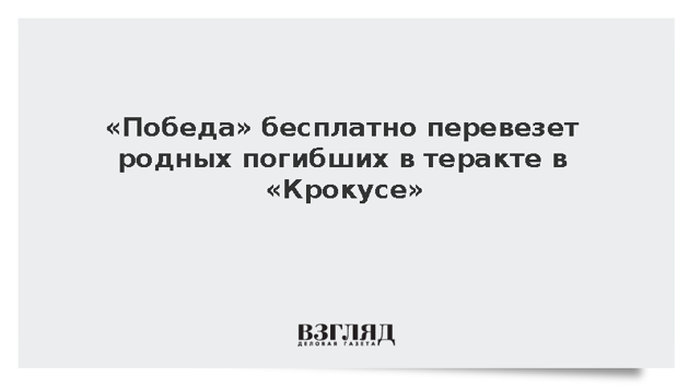 Авиакомпания «Победа» объявила о том, что бесплатно перевезет родственников погибших и пострадавших в теракте в «Крокус сити холле».