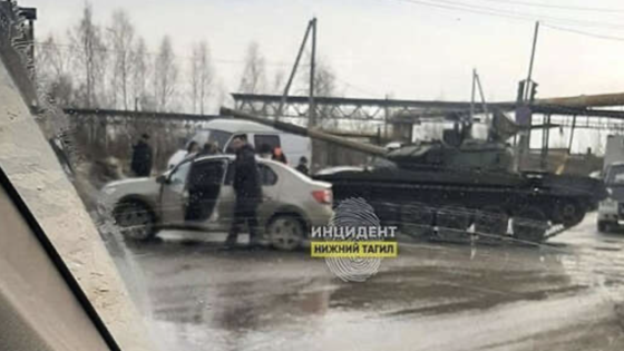 Танк врезался в легковой автомобиль на регулируемом перекрестке в Нижнем Тагиле. Об этом сообщается в группе «Инцидент Нижний Тагил» во «ВКонтакте».