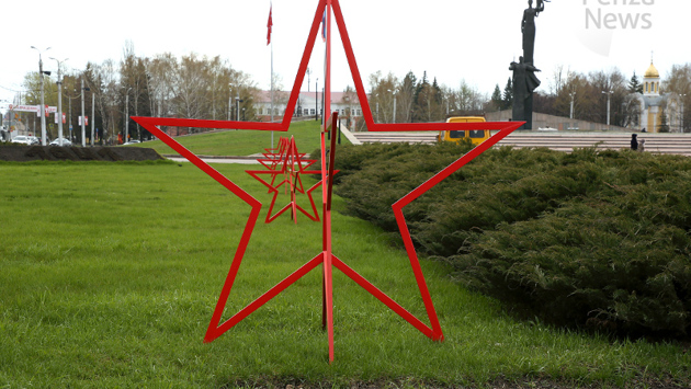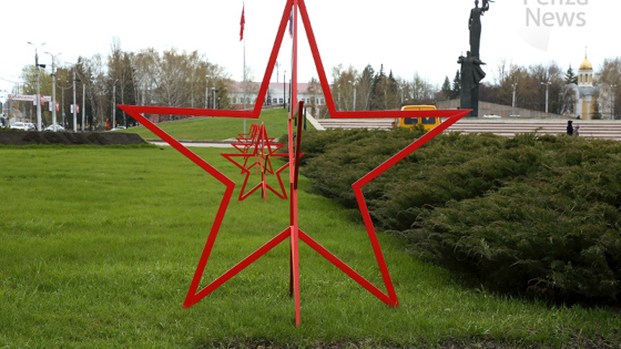 «Готовимся к празднованию Дня Победы — священной и особенной даты для каждой семьи. Помимо работ по благоустройству, традиционно в преддверии 9 мая украшаем Пензу. У монумента воинской и трудовой славы, на площади Ленина уже установили шрифтовые инсталляции «Победа», символичные цифры «1941–1945» и флаговые композиции. Массивные арки в виде красных звезд появились на набережной реки Суры в районе стелы «Росток», в сквере «Бессмертный полк», на городских площадях — Юбилейной и имени Ленина», — написал глава Пензы Александр Басенко в своем Telegram-канале в минувший четверг, 25 апреля.