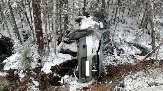 В Нагорском районе водитель съехал с дороги и уложил «Ниссан» на бок