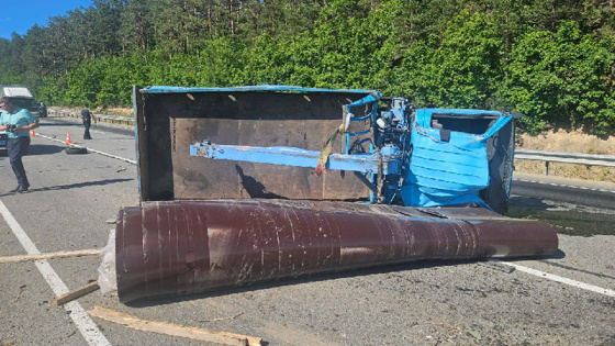 Накануне на трассе недалеко от Белогорска произошло жёсткое ДТП: перевернулся грузовой автомобиль. В результате пострадали два человека - водитель и пассажир.