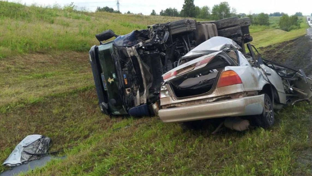 В результате аварии погибли все пятеро человек, находившихся в легковом автомобиле. Личности погибших пока не установлены. Водитель грузовика получил травмы, однако его жизнь вне опасности.