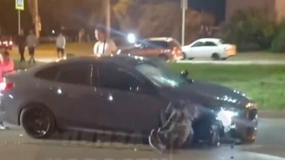 Видео и фото с места событий появились в Сети. На них заметно, что у BMW сильно разбита передняя часть.