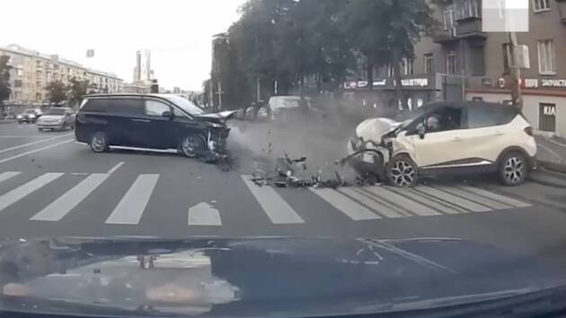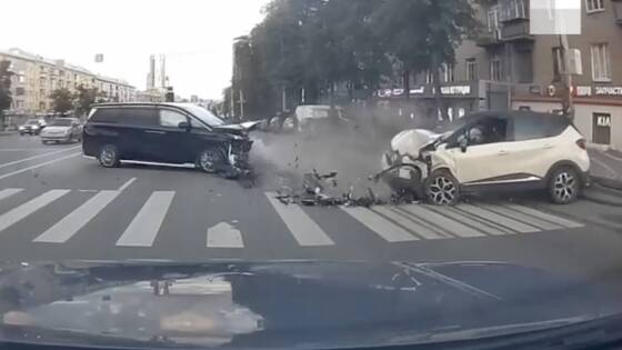 На появившихся кадрах видно, как черный минивэн JAC едет по встречной полосе и влетает в Renault Kaptur, который ехал со средней скоростью по среднему ряду. От столкновения оба автомобиля получили серьезные механические повреждения — у машин полностью смяты капоты.