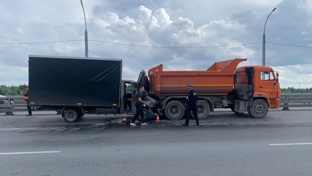 Газель впечаталась в КамАЗ на Бугринском мосту Новосибирска