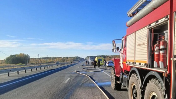 В МЧС добавили, что загоревшийся транспорт оперативно потушили на площади 8 квадратных метров. Специалисты ГАИ устанавливают причины ДТП. В настоящий момент движение по трассе осуществляется в обычном режиме.