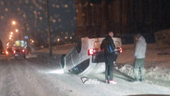 В Новосибирске Subaru Levorg совершил сальто-мортале и оказался на крыше