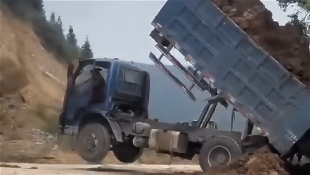 Недалеко от города Вэньшань в китайской провинции Юньнань 14 ноября водитель грузовика вместе с машиной перевернулся и упал с обрыва во время дорожных работ. Об этом сообщает Telegram-канал RU_CHP и публикует видеозапись инцидента.