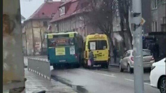 В Калининграде на Павлика Морозова в районе Киевской столкнулись автобус №21 и маршрутка №63. Об этом «Клопс» сообщили очевидцы происшествия.