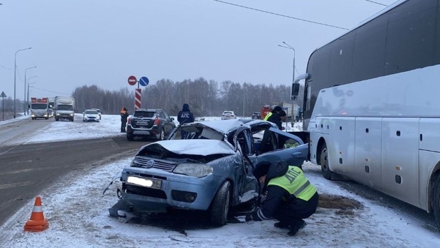По предварительным данным, 55-летний мужчина за рулем Fiat двигался в сторону Екатеринбурга, во время обгона машину занесло. Легковушка столкнулась со встречным автопоездом Daf, а затем с попутным грузовиком Volvo. После этого автомобиль отбросило на встречный автобус Yutong, перевозивший 19 пассажиров из Екатеринбурга в Каменск-Уральский. Никто из них не пострадал.