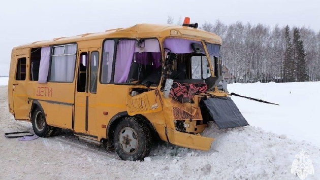В Башкирии на трассе столкнулись школьный автобус и бензовоз