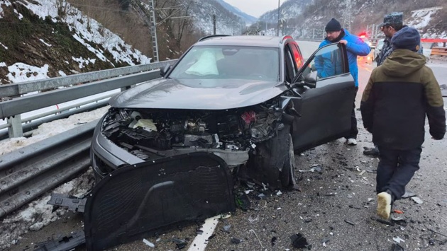Инцидент случился сегодня около семи часов утра. Водителя автомобиля Kia, ехавшего со стороны поселка Красная Поляна в сторону Адлера, занесло. Он выехал на полосу встречного движения и столкнулся с "Волгой" и Voyah.