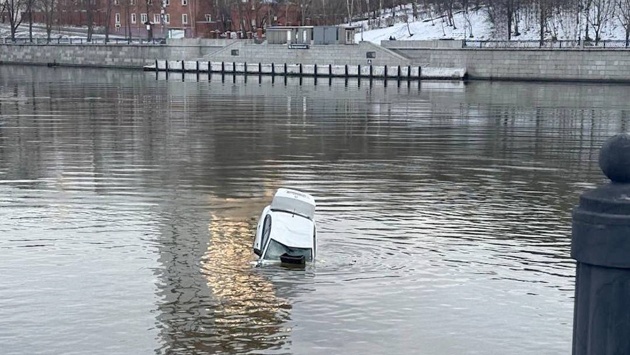 Инцидент произошел на Лужнецкой набережной. Автомобиль протаранил ограждение, свалился в воду и пошел ко дну.