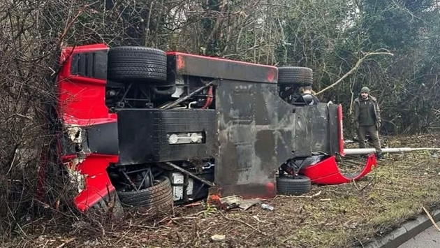На снимках, опубликованных в социальных сетях, можно увидеть сильно поврежденный F40, зарегистрированный как «F40PRX», лежащий на боку с полностью оторванным передним бампером.