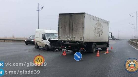 На Окружной в Калининграде грузовик врезался в микроавтобус