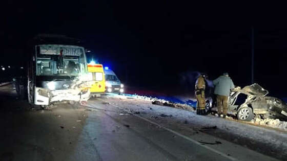 Под Новосибирском Toyota влетела в автобус с 14 пассажирами внутри