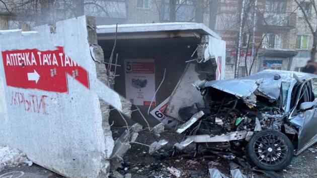 В Белгороде автомобиль «разорвало» от столкновения с бетонным укрытием