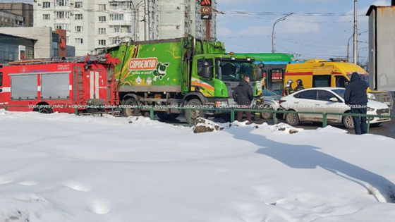 В Новокузнецке произошло ДТП с участием мусоровоза и легковой машины.