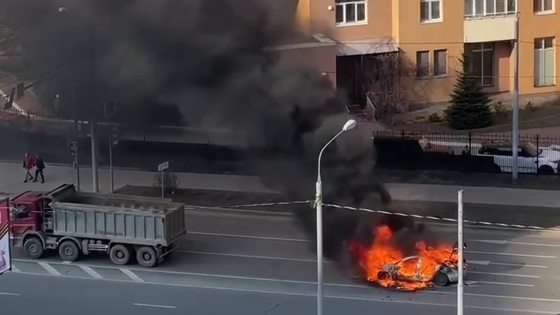 На видео с места происшествия можно увидеть, что салон машины полностью охвачен огнем, вверх поднимается столб дыма.